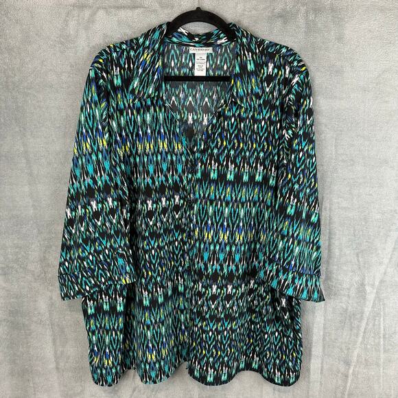 Catherines Top Womens 3X Green Button Down 3/4 Length Sleeve Office Casual