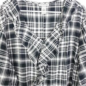 Catherines Top Womens 3X Ruffle Front V Neck Pullover Gingham Plaid Neutral