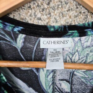 Catherines Top Womens Plus 0X 14/16W Green Velvet Blouse V Neck Casual Ladies