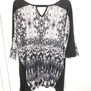 Catherines Top Womens Size 1X Studded Keyhole Back Abstract Dark Neutrals Tunic
