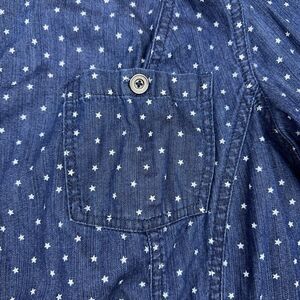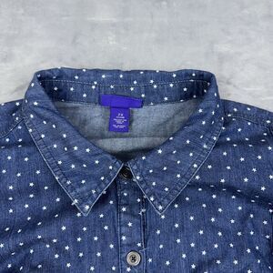 Catherines Top Womens Size 2X Blue Chambray Button Up Shirt Star 3/4 Sleeves
