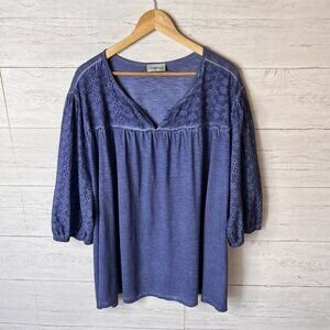 Catherines Top Womens Size 4XL Blue Eyelet Balloon Sleeve V Neck Blouse Peasant