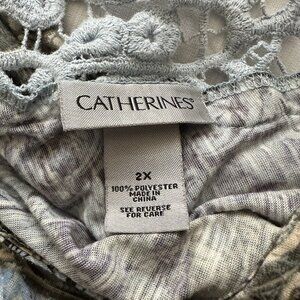 Catherines Tunic Shirt Women's 2X Rhinestone & Lace Embellished Blouse Tee Blue