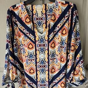 Catherines Tunic Top Beaded Accordion Pleat Bell Sleeve Sheer Blouse Size 3X
