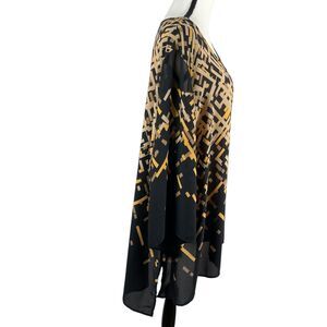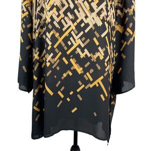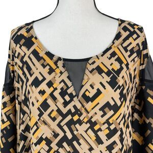 Catherines Tunic Top Plus Size 3X (26/28W) Geometric Long Sleeve Sheer Blouse