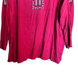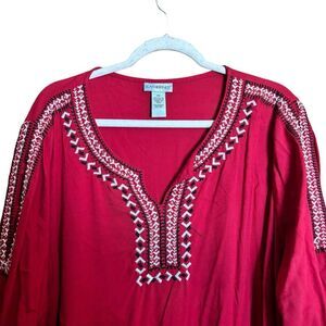 Catherines Tunic Top Womens 2X Red Boho Embroidered Trim Cold Shoulder Blouse