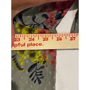 The Catherines Tunic Top in size 1X Plus is a stylish and versatile piece perfect for various occasions. This grey green top features a floral pattern, 3/4 sleeves with buttoned cuffs, and a unique tassel neckline detail. Made from 100% polyester chiffon, this tunic is lined for added quality and comfort. The bohemian and peasant-inspired design is ideal for those seeking a relaxed yet fashionable look, suitable for travel, weddings, casual outings, or even business meetings and parties. Ideal for all seasons, this tunic by Catherines is a must-have addition to any woman's wardrobe.