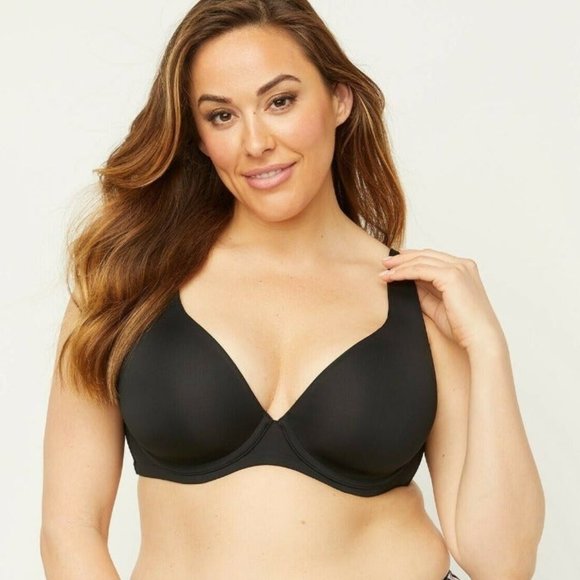 Catherines Uplifting Plunge Bra Underwire Medium Coverage Black Plus Size 54C