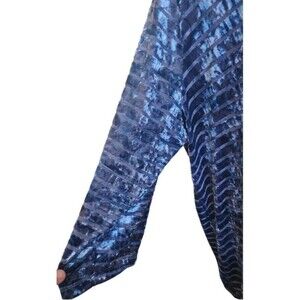 The Catherines Velvet Burnout Top in Size 2X is a super soft and comfortable blouse perfect for casual occasions. Made from a blend of polyester and spandex, this top features a V-neckline, long sleeves, and a pullover closure. The blue color with velvet burnout accents adds a touch of bohemian style to this relaxed fit top, making it suitable for all seasons - summer, fall, and spring. Easy to care for with machine washable fabric, this top is a stylish addition to any woman's wardrobe. CLOTHING AND FABRIC ITEMS: All clothing and fabric items have been steam cleaned and/or washed.