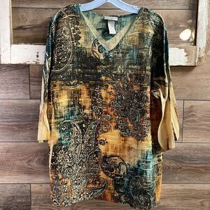 Catherine’s Vneck 3/4 Sleeve Abstract Plus Size Top, SZ 1X 18/20W, Multicolor