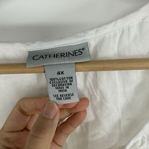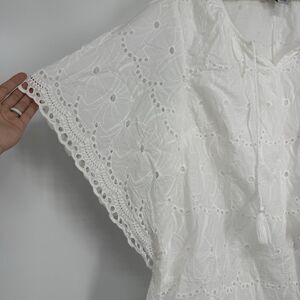 Catherines White Eyelet Cotton Tunic Poncho Top Size 4X Plus Peasant Coastal