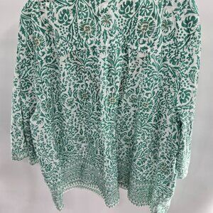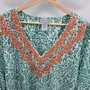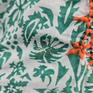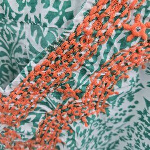 Catherines White Green Orange Embroidery Cotton V-Neck Short Sleeved Top 4x
