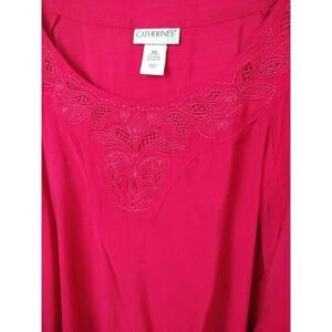 Catherines woman 5X pink pullover tunic top in very good condition.* One small flaw see next to last pic thumb is showing flaw* 3/4 sleeve open paisley embroidery lightweight lower side slit Hemline
