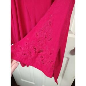 Catherines Woman 5X Pink Tunic Blouse 3/4 Sleeve Paisley Open Embroidery...