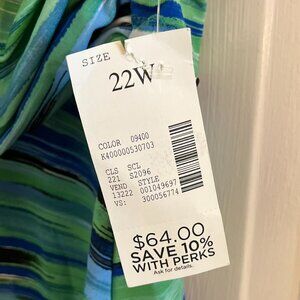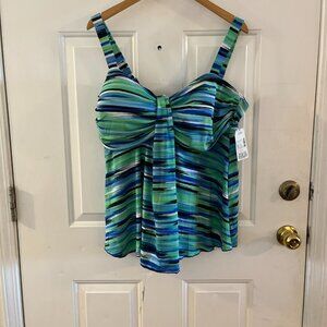 Catherines Woman's Green/Blue Plus-Size Summer Beachy Resort Tankini Top Sz 22W