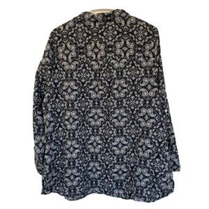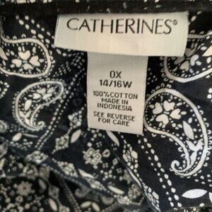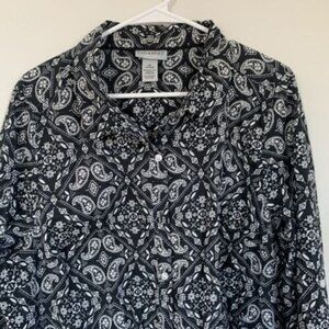 Catherines Women 0X 14/16W Multicolor Black White Paisley Print Button Down Top