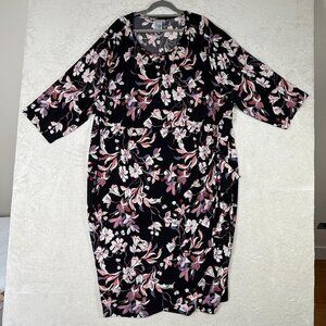 Catherines Women 4X Strawbridge Fit & Flare Dress Black Floral Soft Knit