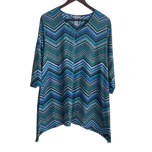 Catherines Women Tunic Top 1X Gem Detail Casual Stretch Lagenlook Office Travel