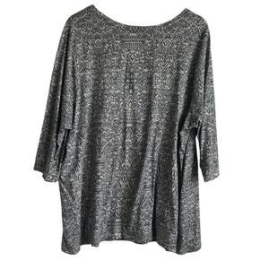 Catherines Women Tunic Top 2X Black Abstract Stretchy Knit Whimsy Boho Office