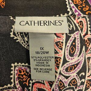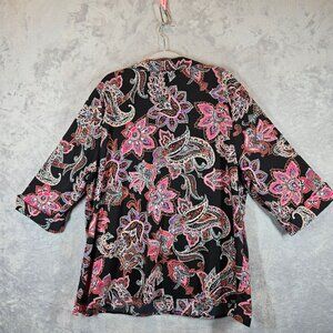 Catherines Womens 1X Button up Blouse 3/4 Sleeve Paisley Multi-Color office bold
