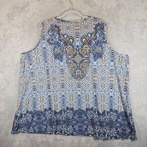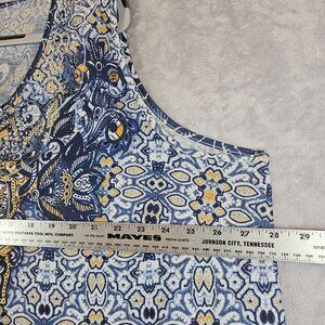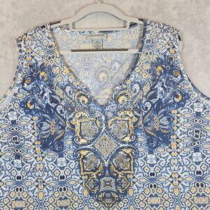 Catherines Womens 26 Blue Yellow geometric Top With Embellished Beachy Casual