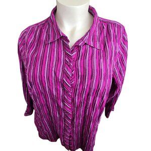 Catherines Womens 2X 22/24W Purple Pink Silver Striped Button-Up Shirt JJ4061