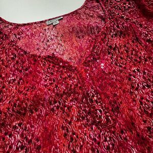 Catherines Women's 3X (26/28W) Tunic Crinkle Pink Damask Print Sequins Artsy