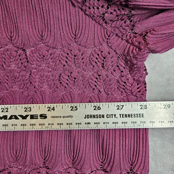 Catherines Womens 3X Plum Lacy Overlay Tunic Top Peek a boo Sleeves Flowy Fit