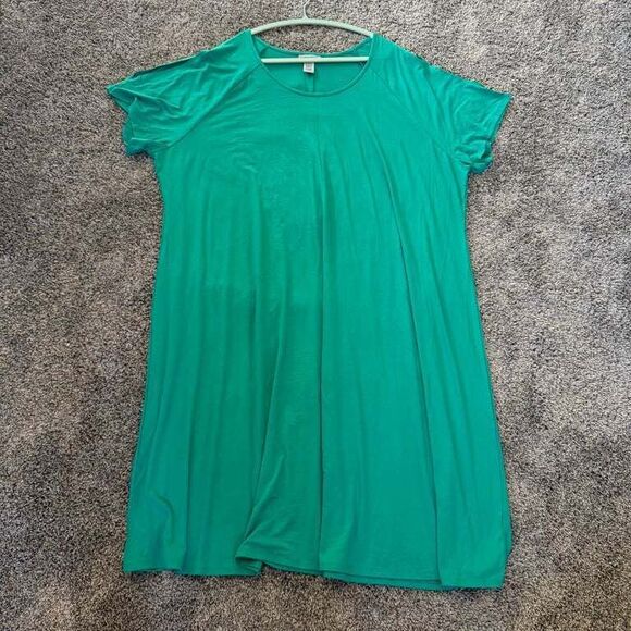 Catherines Women's 3X Plus Size Green Short Sleeve Dress Relaxed Stretch