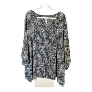 Catherines Womens 4X Black White Button Down Top Shirt Blouse Roll Tab Office
