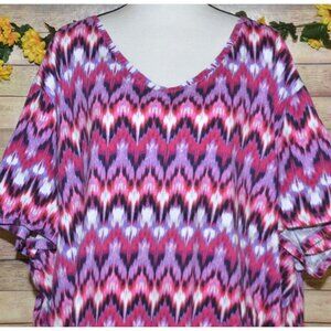 Catherines Women's 4X Pink Colorful Short Sleeve V-Neck T-Shirt Knit Top Casual