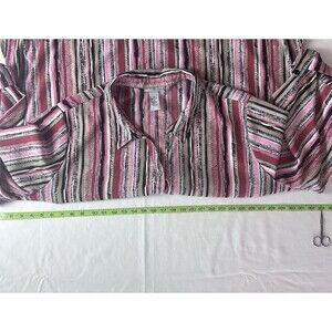 This Catherines women's top is a perfect addition to your wardrobe. The striped pattern, V-neckline, and roll tab sleeves make it a stylish and versatile piece that you can wear for any occasion. The lightweight material is comfortable and breathable, making it perfect for summer. The button-up closure and accents add a touch of sophistication to the top. It's made of polyester and spandex, and it's available in a size 4X. The top is multicolored, and it's perfect for versatile outfits.