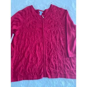 Catherine’s Womens Berry Embellished Ribbon Design Zipper Cardigan Sweater Sz 1X