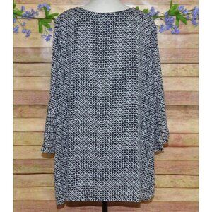 Catherines Women's Black 1/4 Button Up Blouse 2X 3/4 Bell Sleeves V-Neck Tunic