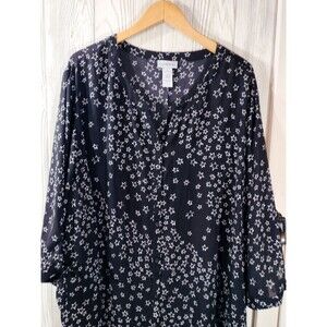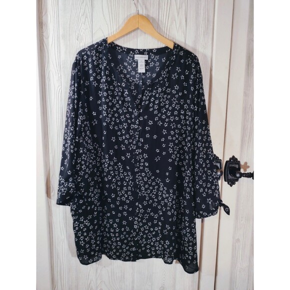 Catherines Womens Blouse 4X Black Star Lightweight FREE SHIPPING!