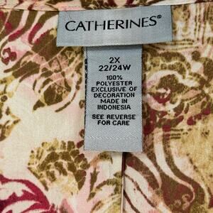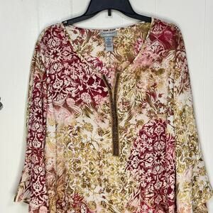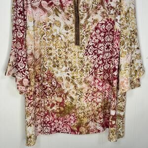 Catherines Womens Blouse Size 2X Green Floral Beaded Trim Long Sleeve Tunic
