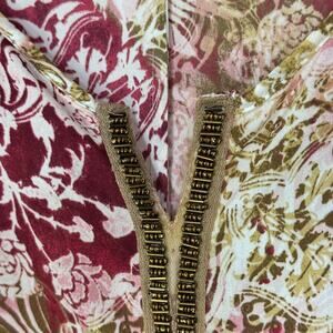Catherines Womens Blouse Size 2X Green Floral Beaded Trim Fairy Whimsical Artsy