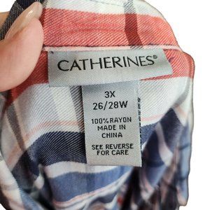 Catherines Womens Blue Plaid Pullover 100% Rayon Top Size 3x (26/28)