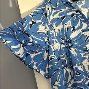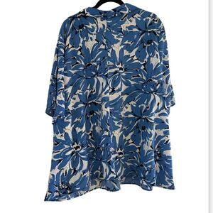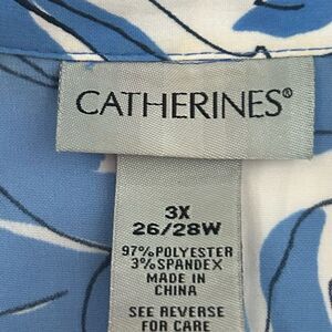 Catherines Women's Blue White Floral Timeless Short Sleeve Blouse Size 3X