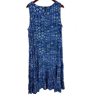 Catherines Womens Blue Ikat Maxi Dress Size 2X Sleeveless Tiered Flowy