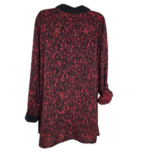 Catherines Womens Floral Button Up Shirt 3X Black Red Roll Tab Sleeves Office