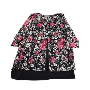 Catherines Womens Floral Lace Overlay Tunic Top Size 2X 22/24W Black White Pink