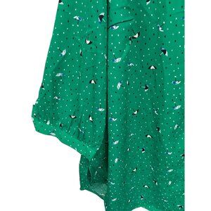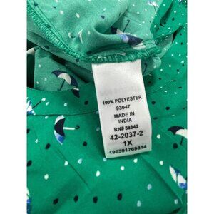 Catherines Womens Green Blouse 1X Umbrella Print 3/4 Sleeve Button-Front
