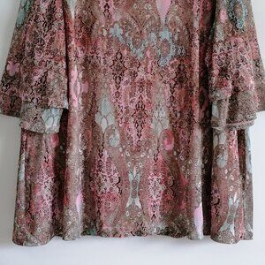Catherines Women's Multicolor Bell Sleeve Scoop Neck Lace Paisley Tunic Top 1X