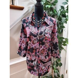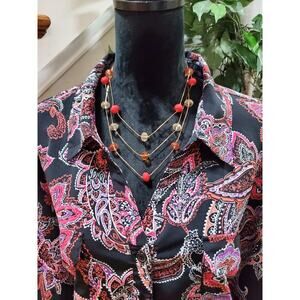 Catherines Womens Multicolor Polyester Long Sleeve Collared Button Down Shirt 2X