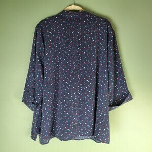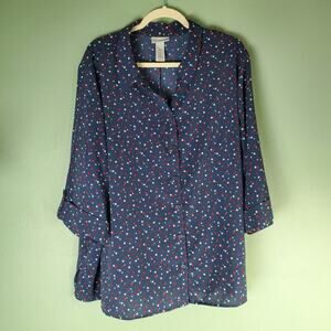 Catherines Womens Navy Blue Star Lightweight Button Up Tunic Blouse Size 3XWP