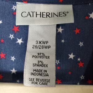 Catherines Womens Navy Blue Star Lightweight Button Up Tunic Blouse Top Size 3XWP Petite