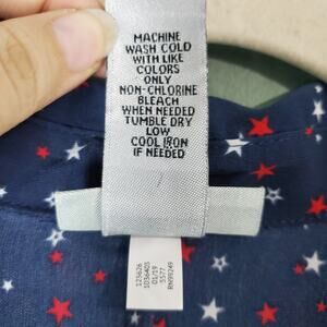 Navy blue with red and white stars. Perfect to wear for the holidays Memorial Day or Fourth of July