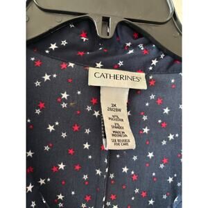 Catherines Womens Navy Star Button Down 3X 26/28W Red White Blue Americana