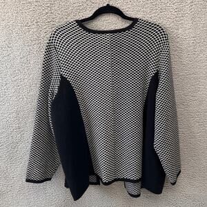 Catherines Womens Open Cardigan 1X Black White Geometric Stretch Glam Long slv